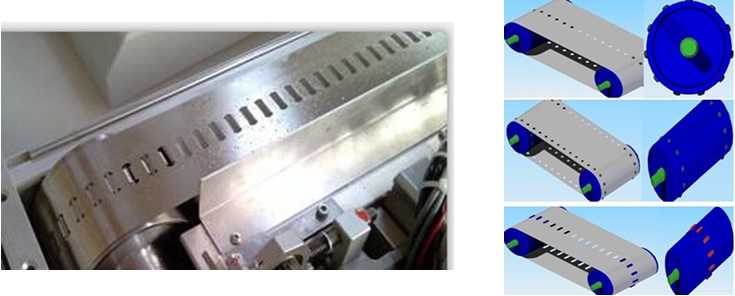 以钢带作为载体,可以在钢带上面加装各种组件和装置,可满足更功能需求。当前,在医药、食品、电子元器件自动包装生产线和连续装配生产线中,使用的钢带上面都加载了各种形式的附件,有的则是为了挡位灌装,有的则是定位装配,所有组件的加装必须满足钢带弯曲运转条件及抗张力限度。